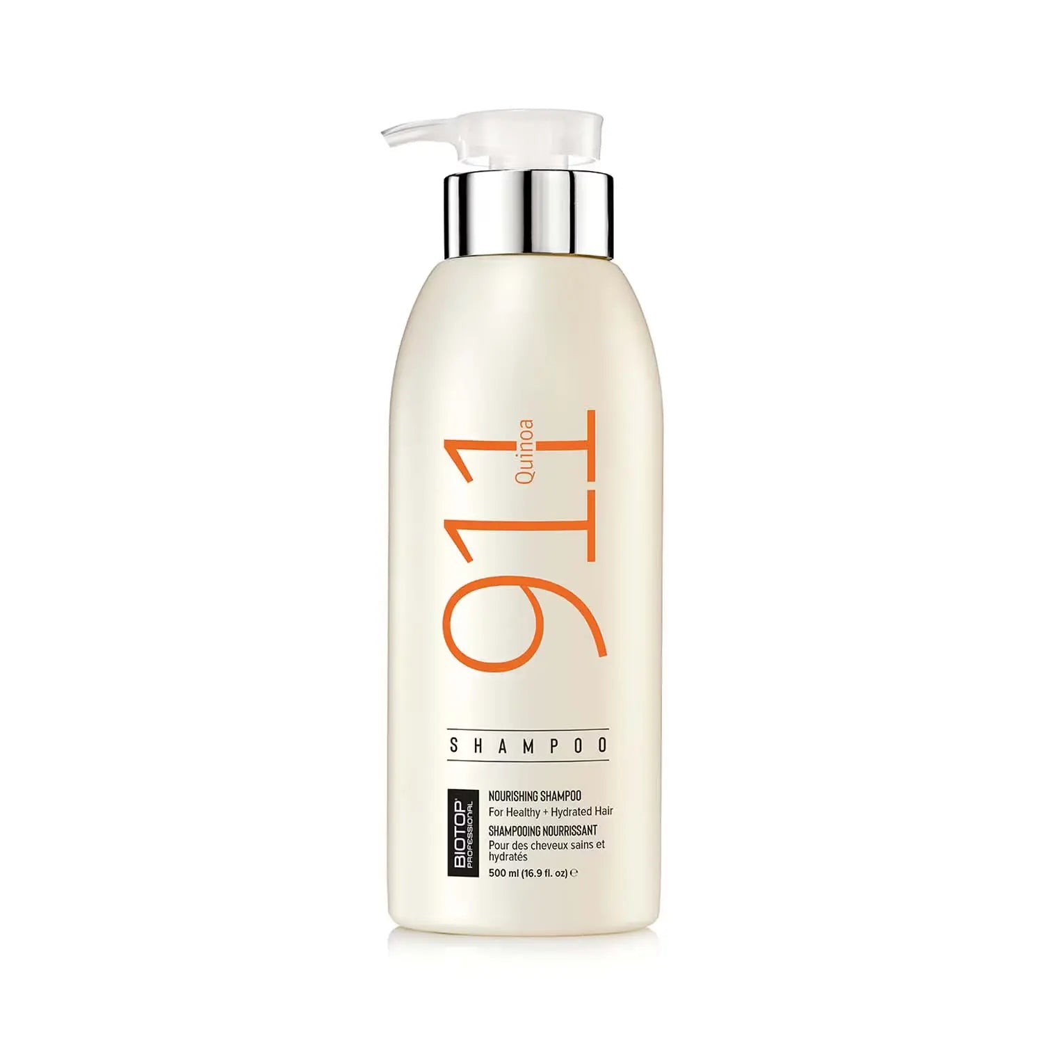Dispense a generous amount of BIOTOP PROFESSIONAL 911 QUINOA SHAMPOO into hands. Lather with water and massage into hair for 2-3 seconds. Gently wash hair from root to tip. Rinse hair thoroughly. Repeat all steps, leaving product in hair for 2-3 minutes before rinsing.