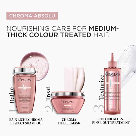 Bain Chroma Respect is a gentle, hydrating shampoo for sensitized or damaged colour treated, fine to medium hair. This sulphate-free shampoo gently cleanses and hydrates hair while respecting the fibre to prevent colour fadage without weighing hair down. Infused with Centella Asiatica and three Restoring Acids: Amino Acid, Lactic Acid and Tartaric Acid, the Chroma Absolu range heals hair from the inside out with +95% nourishment*, +92% strength** and +92% colour preservation for up to 6 weeks*.